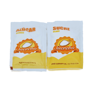 Azúcar moreno de uso general y consumo no industrial. Puede servir para cocina o repostería del hogar, etc. Presentado en formato monodosis para acompañar bebidas como el café o té, para consumir en el bar o restaurante y para los servicios de catering, buffet, para llevar o a domicilio.