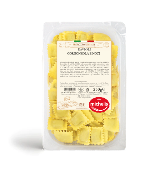 RAVIOLI AL PLIN DE GORGONZOLA Y NUECES PASTA FRESCA 250GR – MICHELIS *Bajo Pedido